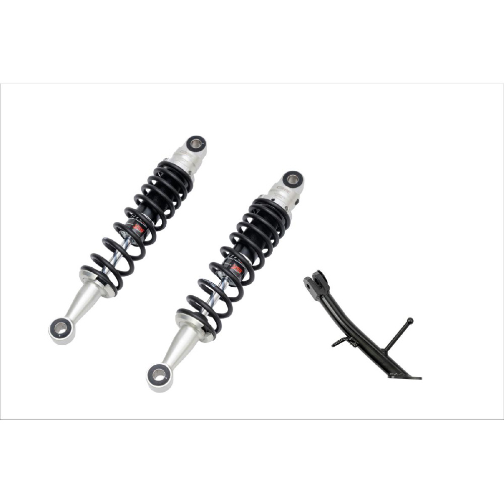 >備考:PHA0057D-SKとPHS0057のセット品番。シート高約30mmダウン(GB350Cは約22mmダウン) ※体重50kg/推奨プリロード位置時。プリロード調整でダウン量は変化します。 ※車高が下がる為、ノーマル車両に比べセンタースタンドの引き起こしが重くなります。