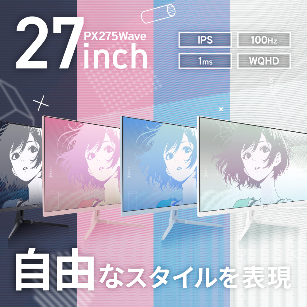 PX275WAVEは、理想のゲーム部屋のコーディネートができるカラーが特徴のゲーミング27インチモニターです。