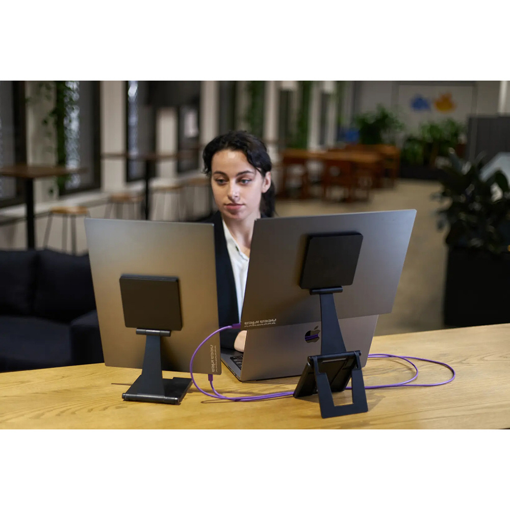 ディスプレイは厚さ5.3mm、重量約765gと、非常にスリムかつ軽量な設計が特徴です。バックパックやブリーフケースにも簡単に収納でき、持ち運びも可能です。また、高品質な航空宇宙用アルミニウムと強化ガラスを採用することで、耐久性とシンプルで洗練されたデザインを両立しています。