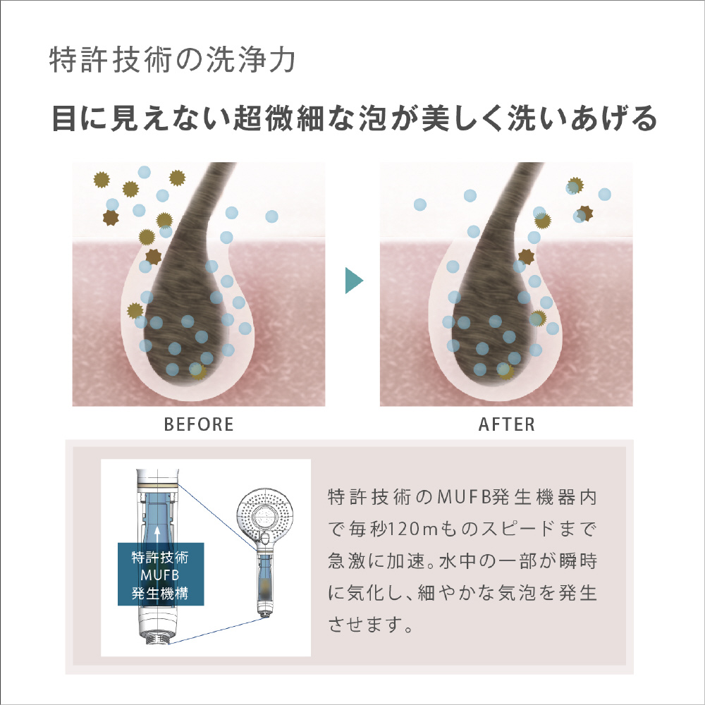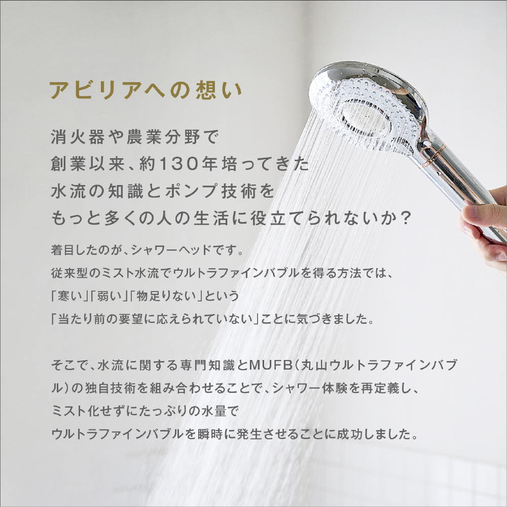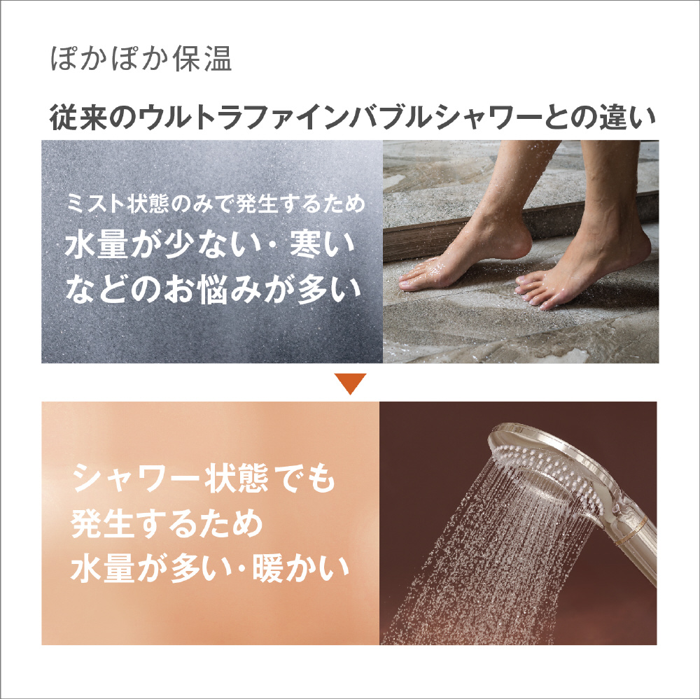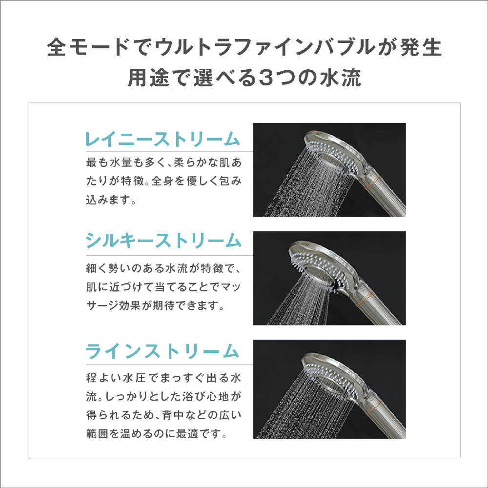 ミストではない、たっぷりの水流のウルトラファインバブルシャワー。
