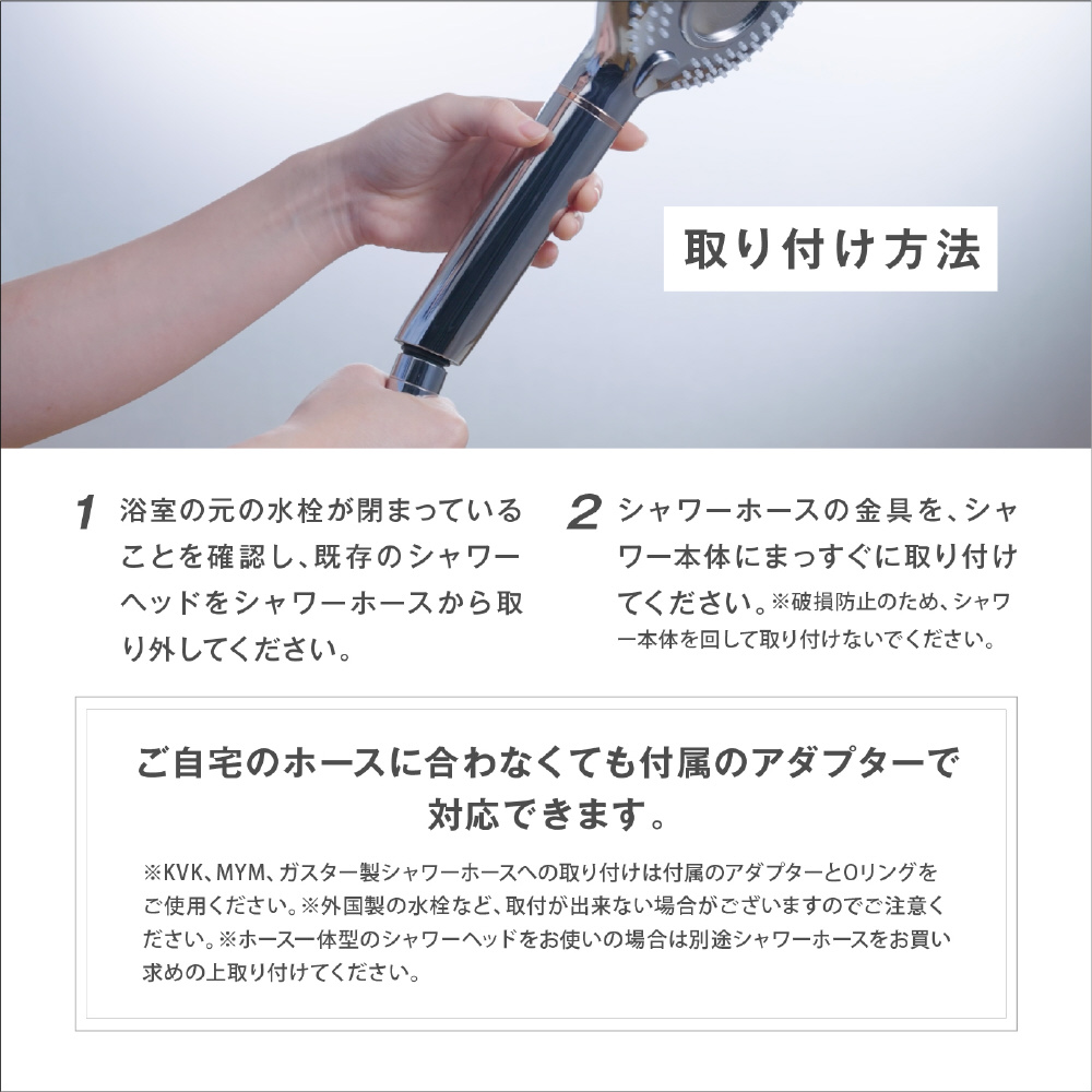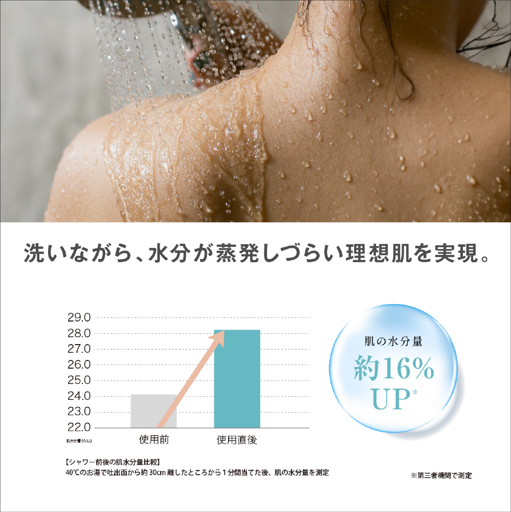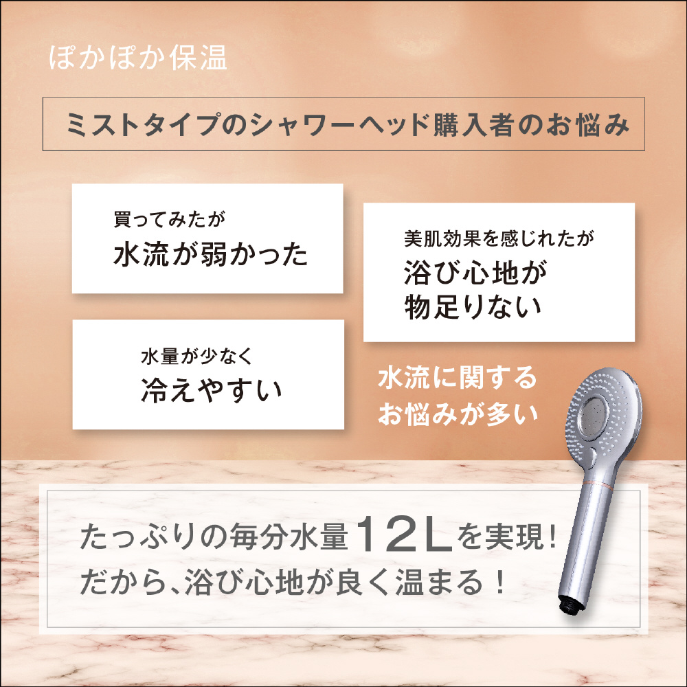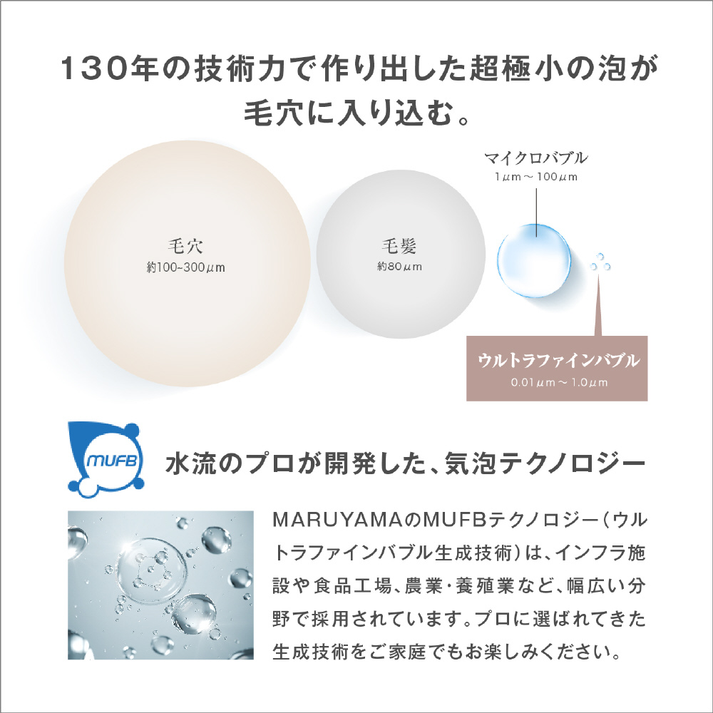 ミストではない、たっぷりの水流のウルトラファインバブルシャワー。