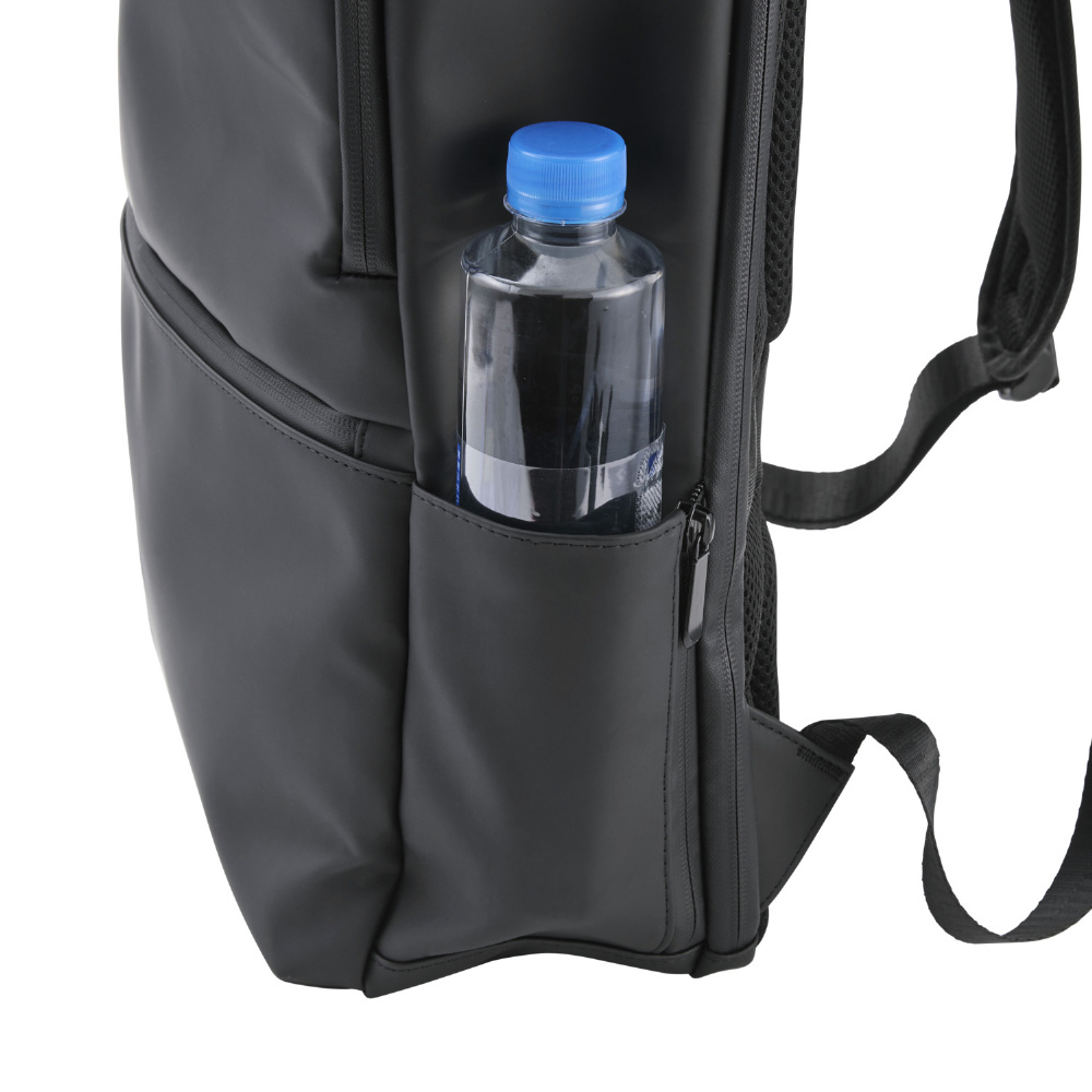 側面には、小物の収納に便利なファスナーポケットと、折りたたみ傘やペットボトルの収納に便利なオープンポケットの2種類があります。オープンポケットは使用しないときにファスナーを閉じることで、ポケットを目立たなくすることができます。