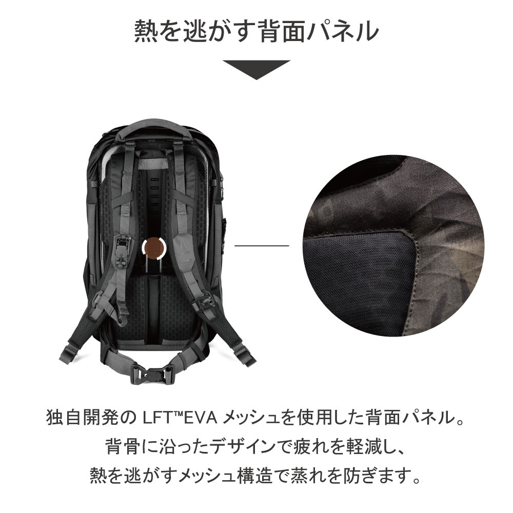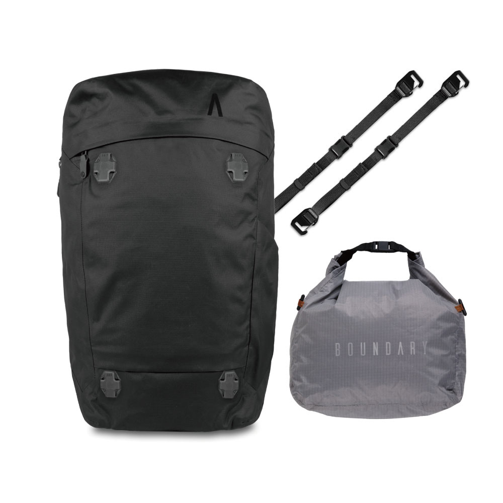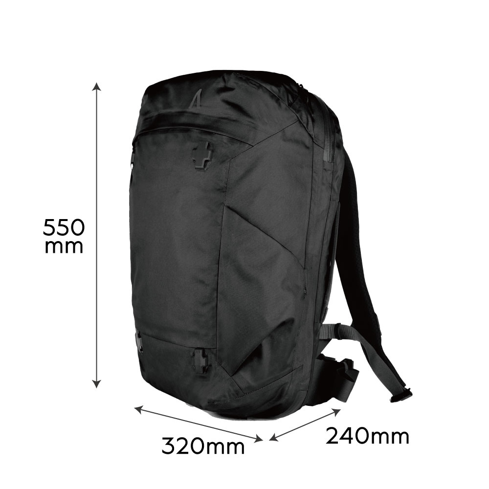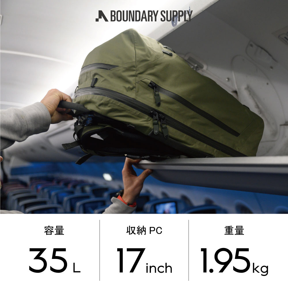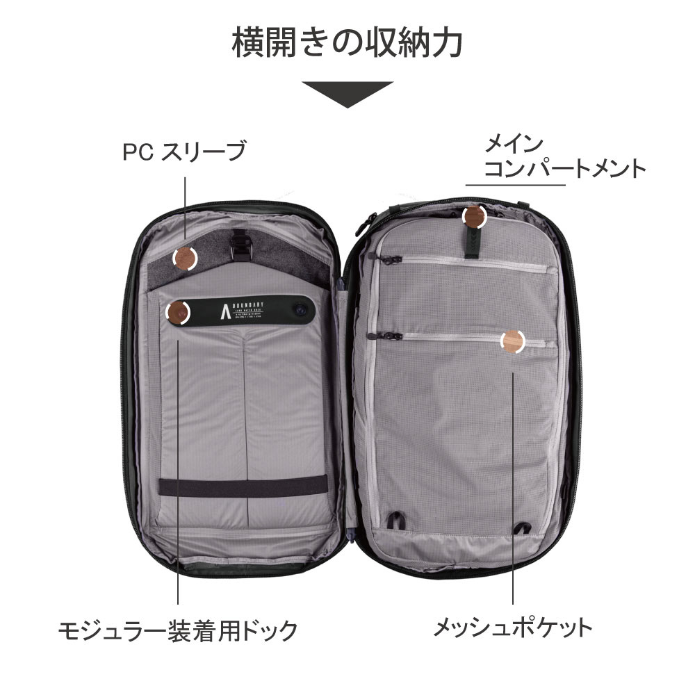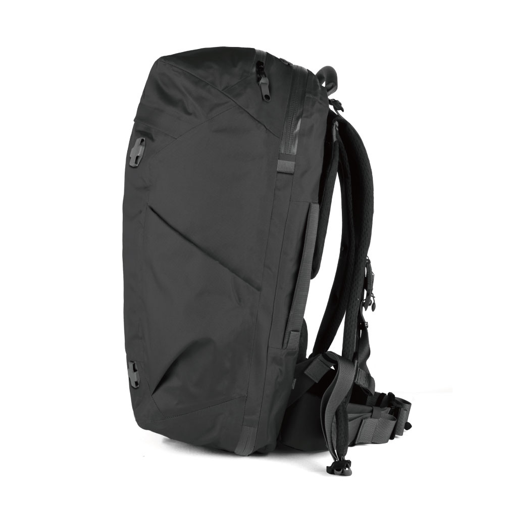 ランドリーバッグが付属した、横開きのバックパック。35Lの大容量と自由度の高いカスタム性があり、旅行やアウトドア活動にぴったりです。撥水加工+止水ジッパーを採用し、防水性もばっちりです。
