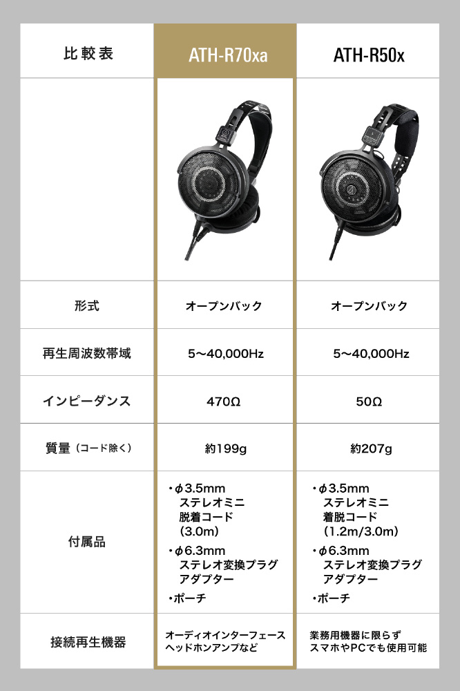 プロフェッショナルオープンバックリファレンスヘッドホン ATH-R70xa [φ3.5mm ミニプラグ]
