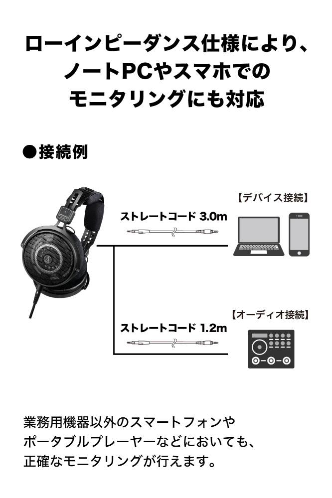 ■モバイル端末や DAP(デジタルオーディオプレーヤー)でのモニタリングにも対応