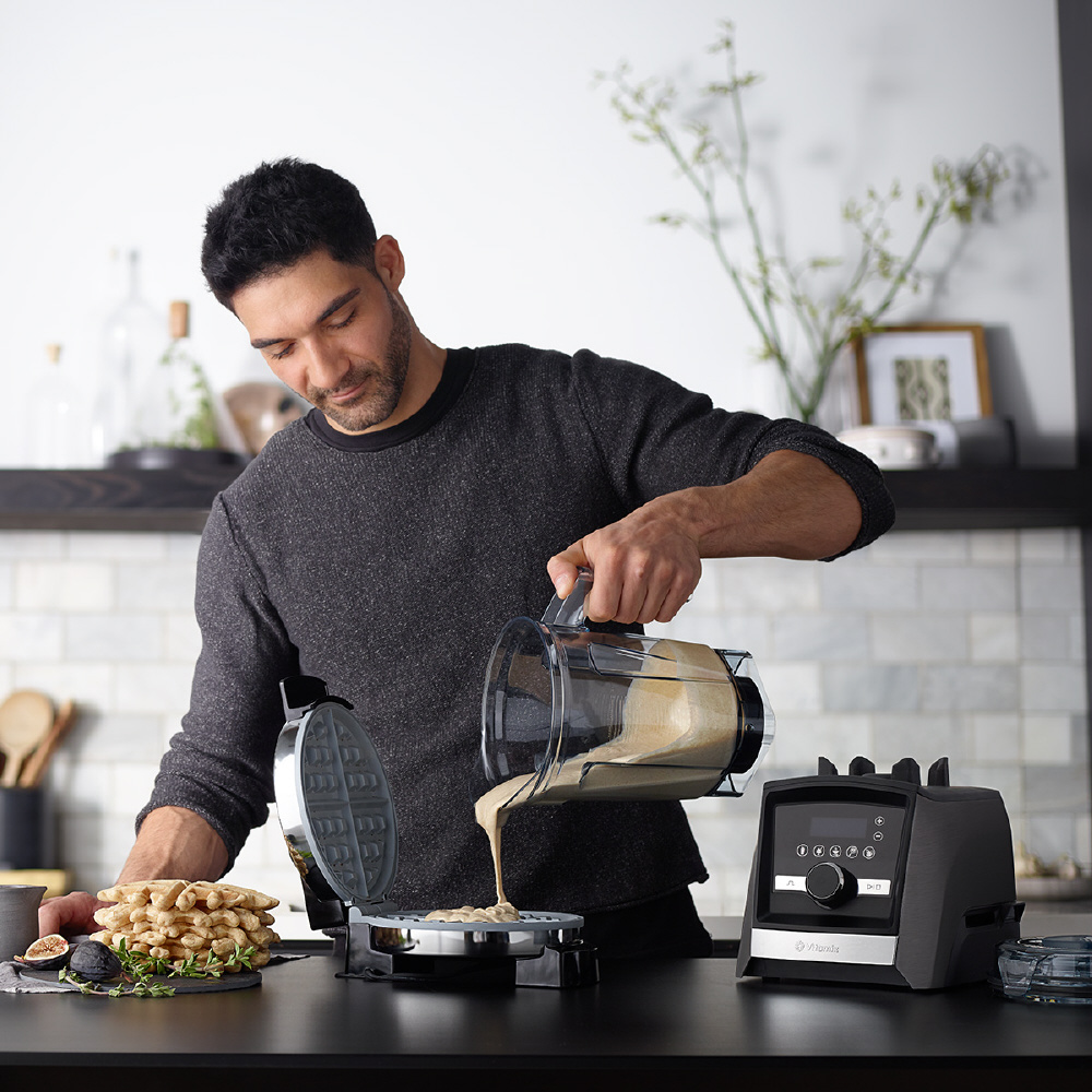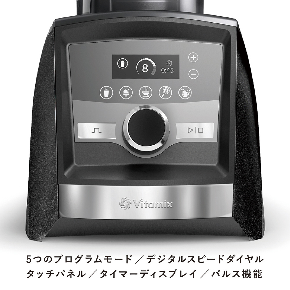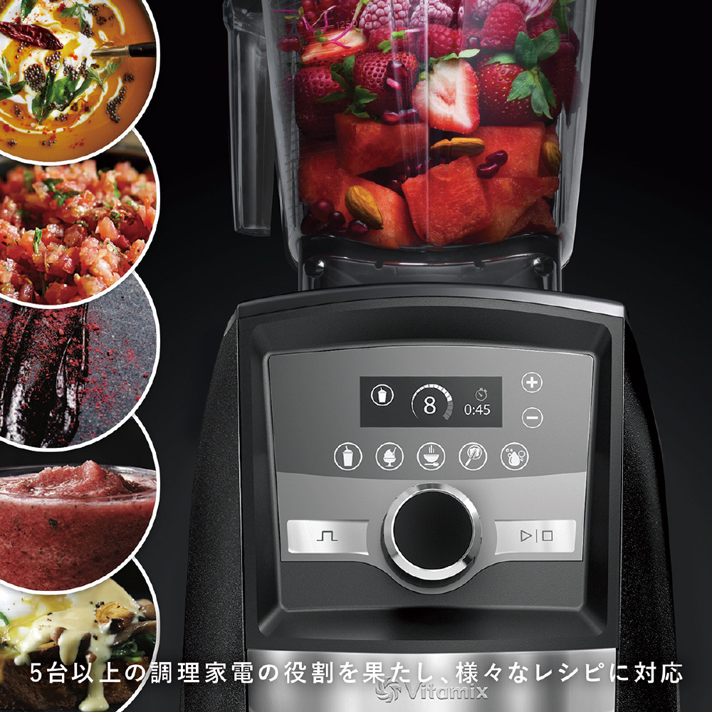 バイタミックスのスピードダイヤルを回す時間とスピード調整、食材入れる、これだけであらゆる調理に対応できます。