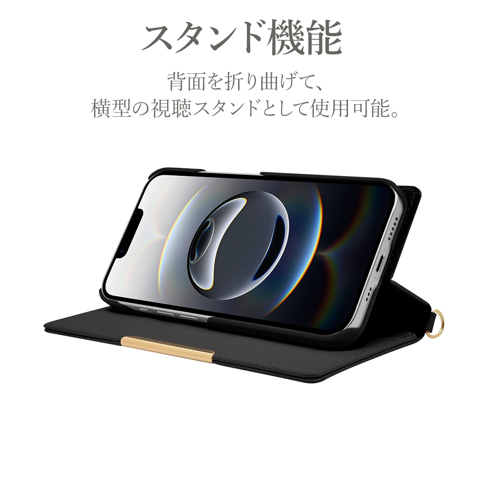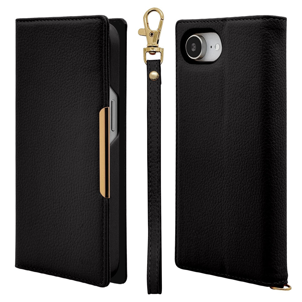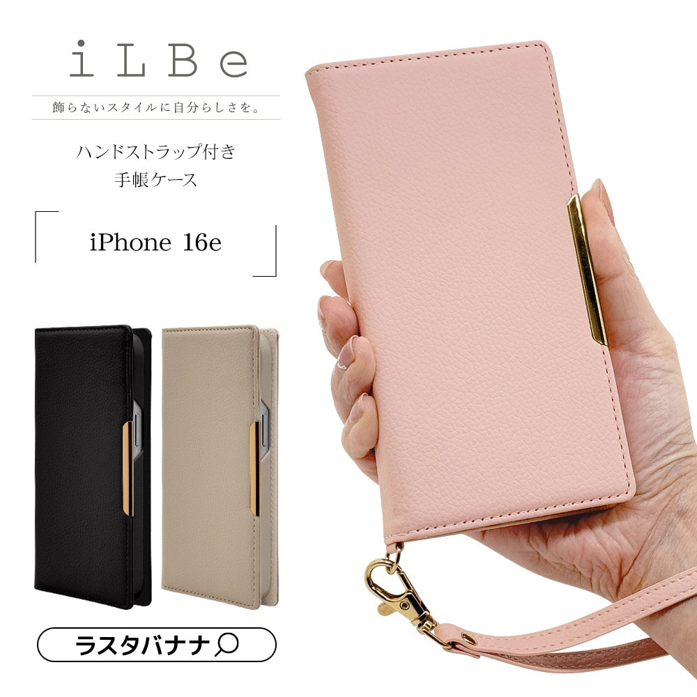 iPhone 16e iLBE 手帳ケース+ハンドストラップ カードポケット ブラック