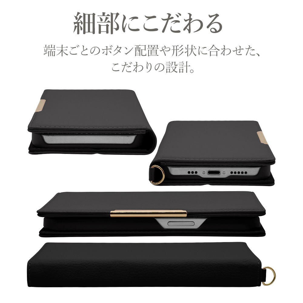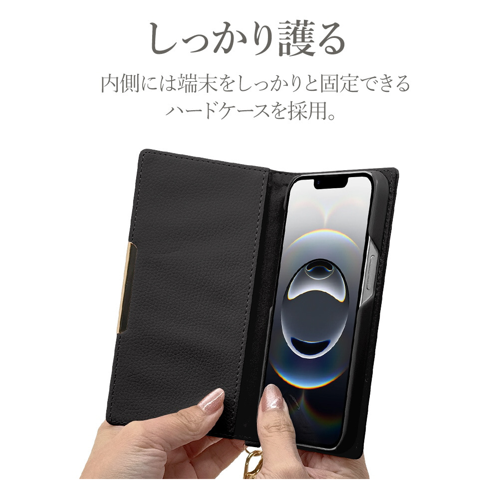 本製品は液晶画面側と背面側の両面を保護できるハンドストラップ付きの手帳型ケースです。