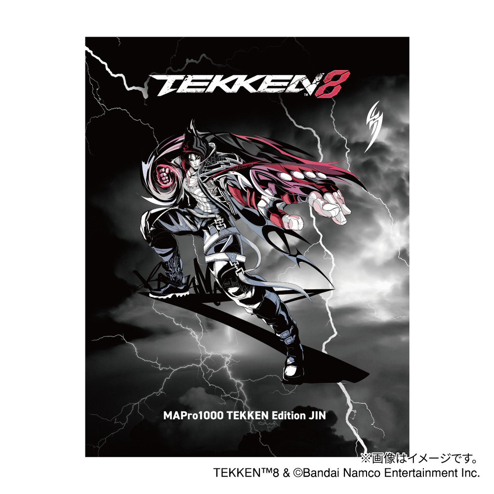 「TEKKEN 8」の世界観とメインキャラクターである「仁」と「一八」のイメージを真空蒸着加工とレーザー加工でそれぞれ反映させたオリジナルデザイン筐体と、オリジナルデザインパッケージを採用しています。