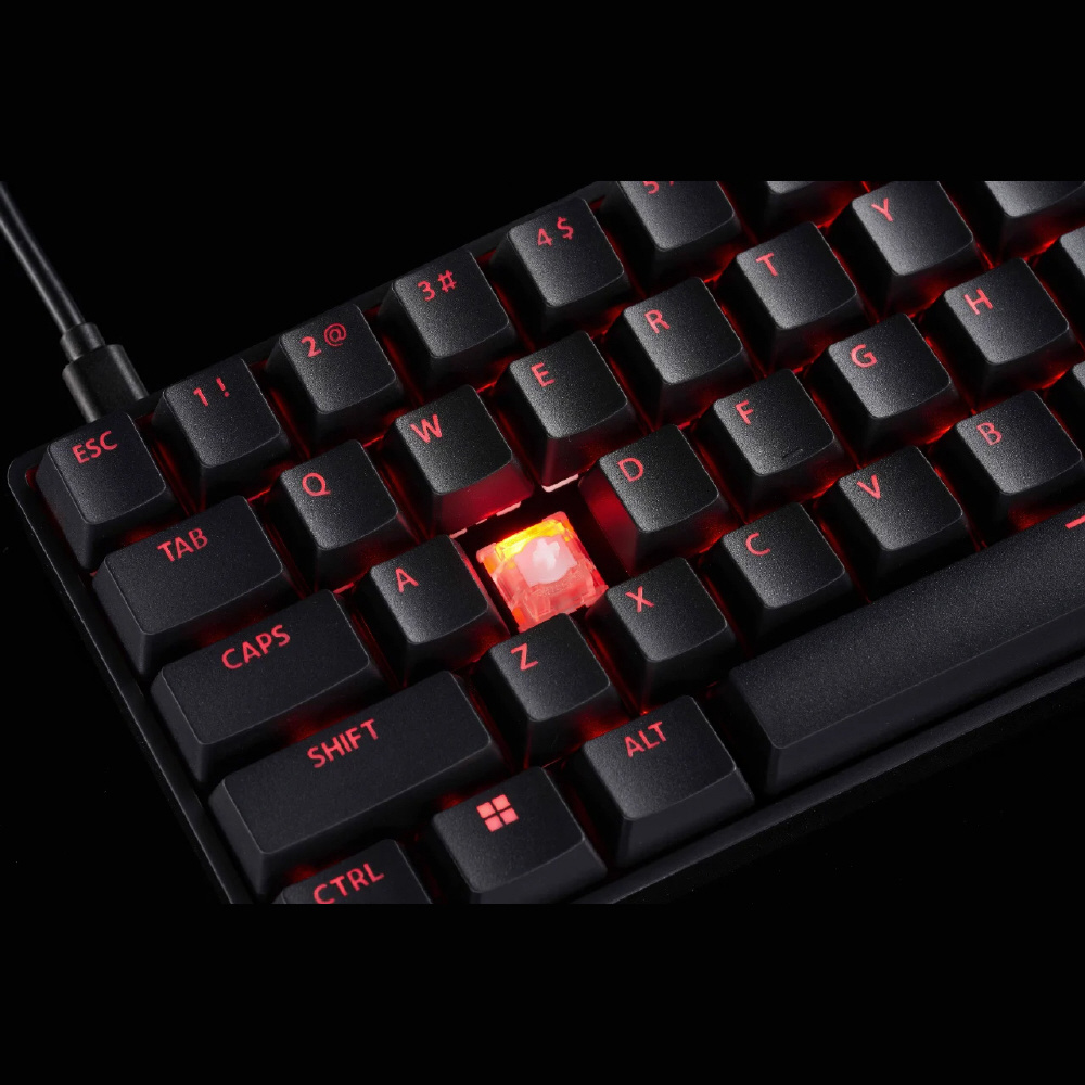 最短0.08 mm単位でのアクチュエーションポイント調整など、eスポーツに求められる性能をコンパクトな65%筐体に搭載しています。