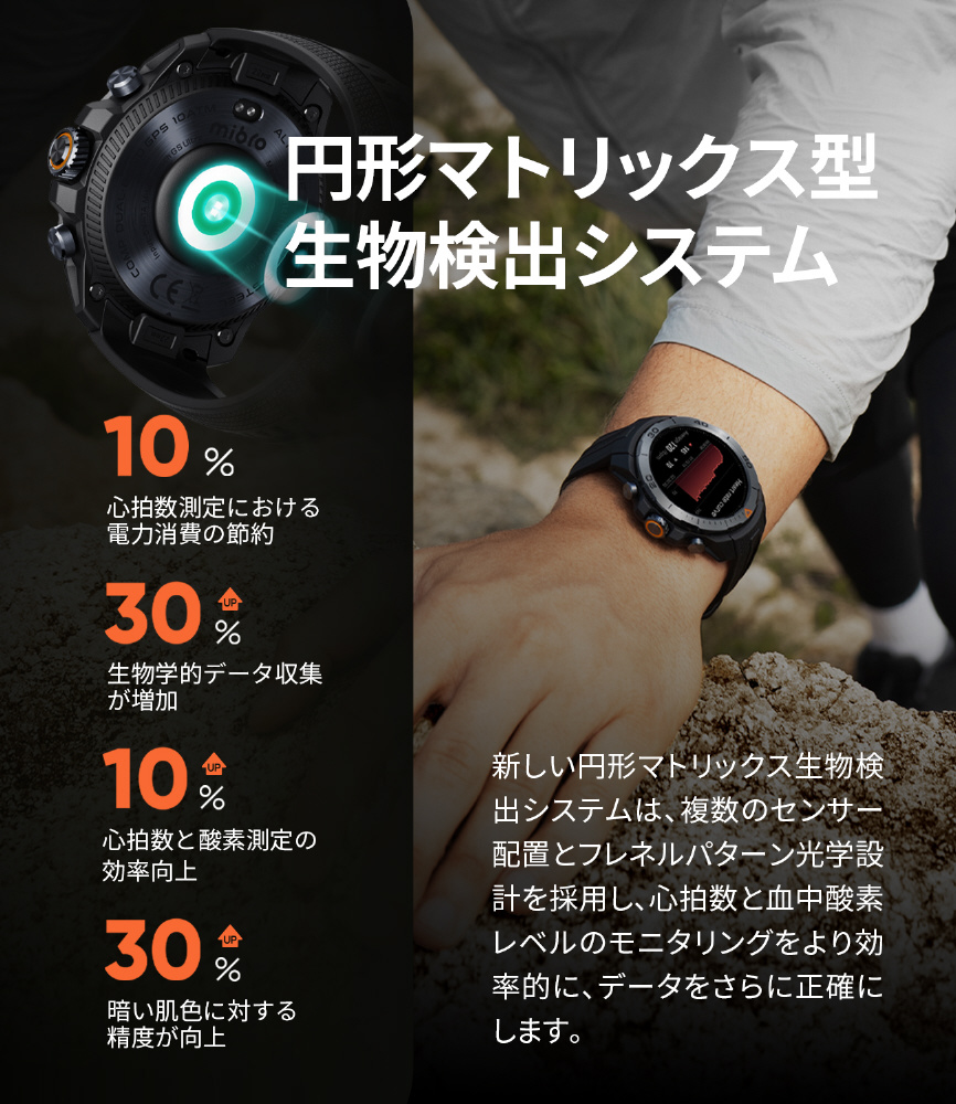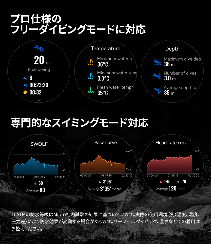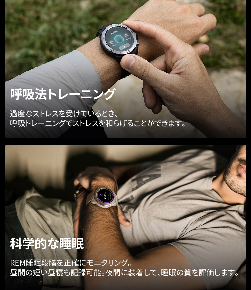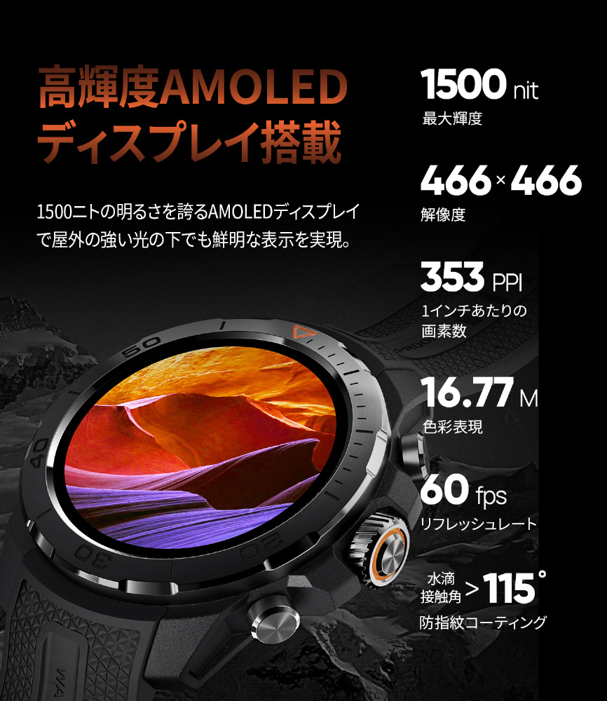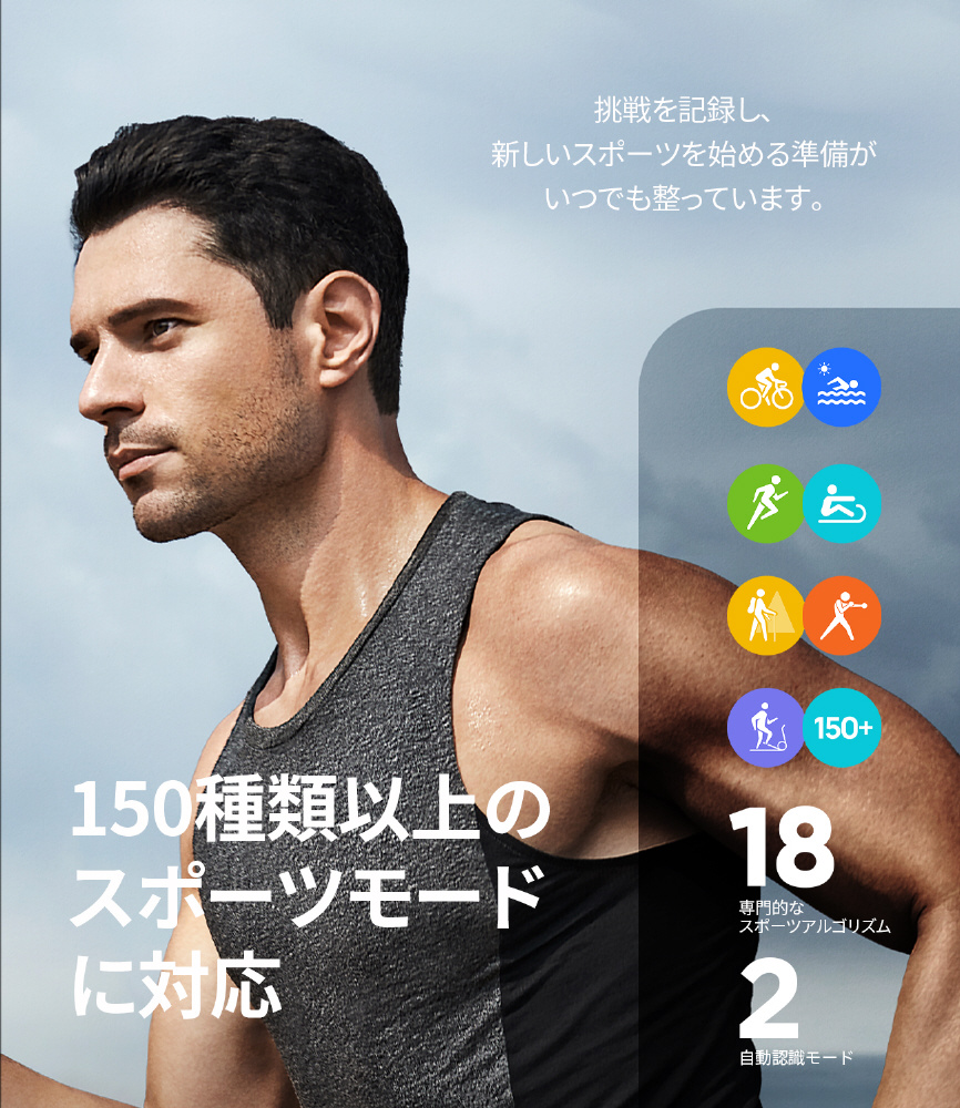 長時間バッテリー、見やすいAMOLEDディスプレイ、防水10ATMを備えたコストパフォーマンスも高い逸品。ファッション&ビジネス&スポーツ それぞれに高付加価値を備えたスマートウォッチです。