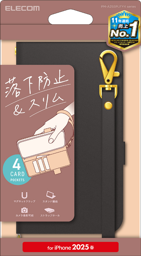 | 商品名 | iPhone 16e ソフトレザーケース 磁石付 ハンドストラップ付 ブラック |