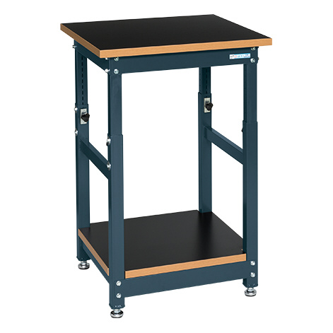 高さ900〜1200mmの範囲で任意の高さに調整可能!!作業スペースをとらない装置台!本体フレーム幅を天板サイズに近づけることでスペースを確保。下段も木製天板(パーチクルボード)にすることで、天板と同等の強度!天板と下段に高さを取ることで、大きいサイズの装置にも対応!