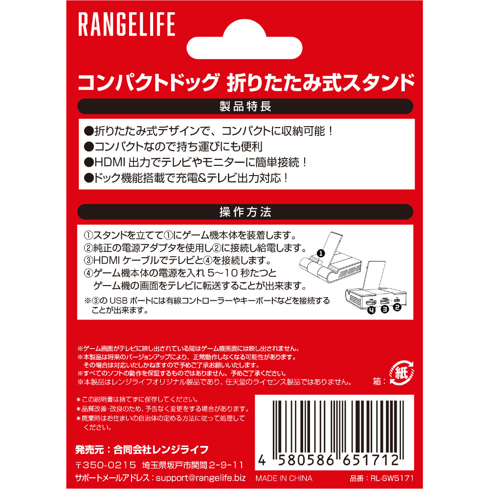 | 商品名 | Switch用コンパクトドッグ 折りたたみ式スタンド ブルーレッド [RL-SW5171] |