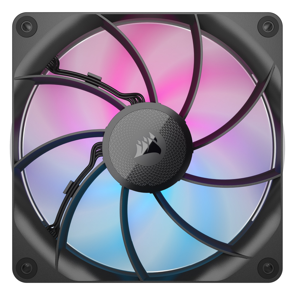 大型ファンブレードとAIRGUIDEテクノロジーにより集中的な冷却を実現。8個のRGB LEDを備えるiCUE LINK対応のPWMファン