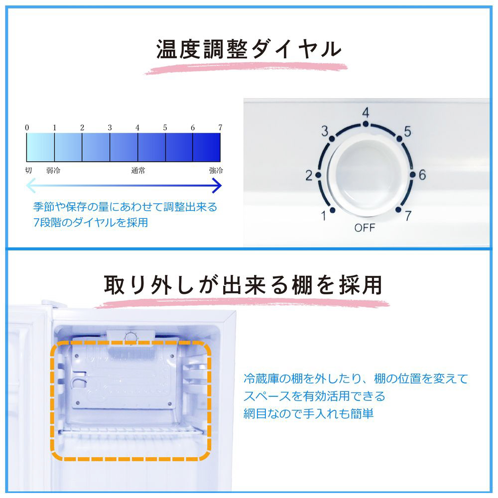 季節や保存の量にあわせて調整できる7段階のダイヤルを採用