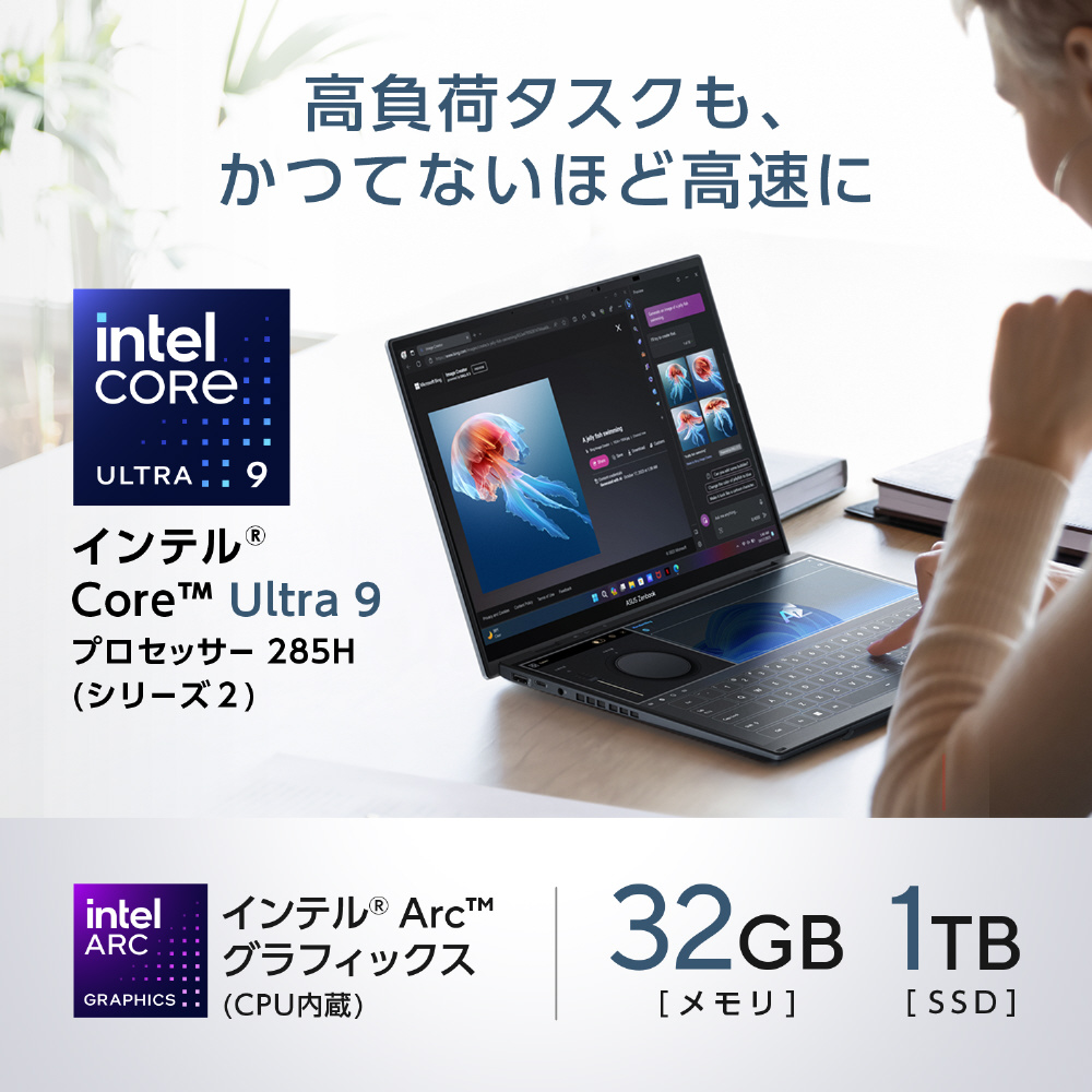 ノートパソコン(2画面) Zenbook DUO (2025) UX8406 インクウェルグレー UX8406CA-U9321W [14.0型 /Windows11 Home /intel Core Ultra 9 /メモリ:32GB /SSD:1TB /日本語版キーボード /2025年2月モデル]