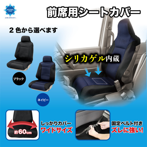 シートカバー シリテックファイバー 吸湿・脱臭 フロント1枚 前席フリーサイズ  ブラック 4128-10BK