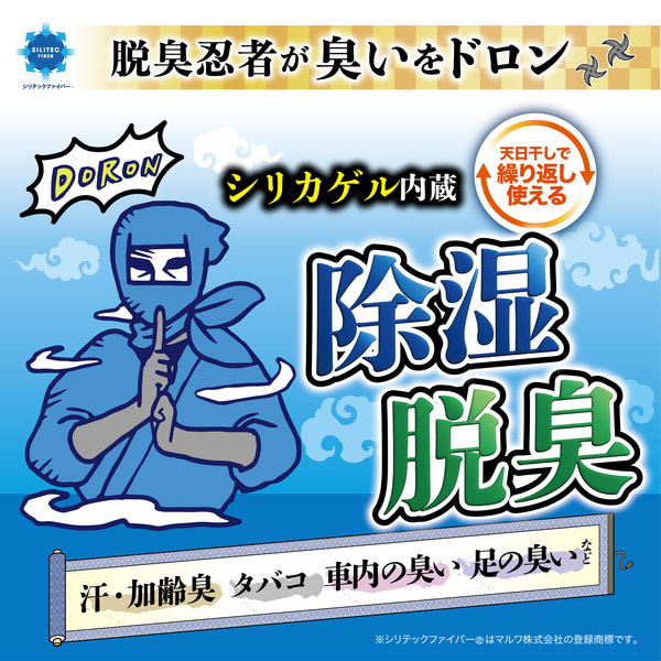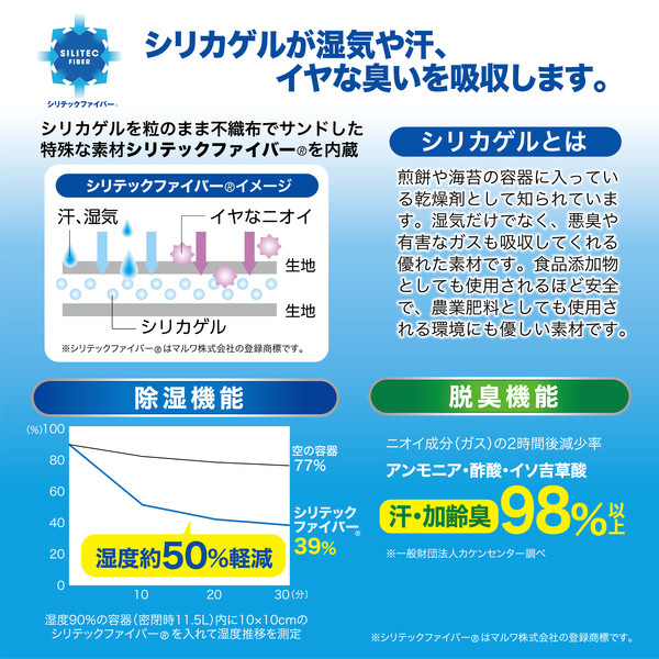 シリカゲルが湿気や汗、イヤな臭いを吸収します