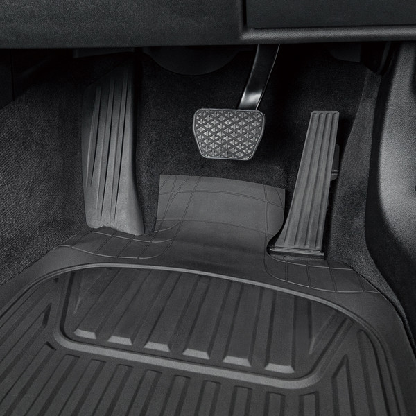※各座席の足元に確実に収まるように取付けてください。特に運転席の足元はご使用方法によってはペダル操作に支障をきたす恐れがありとても危険です。運転前にはマットが確実に取付けられていることをご確認ください。