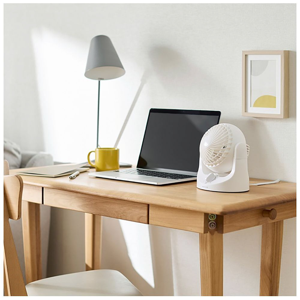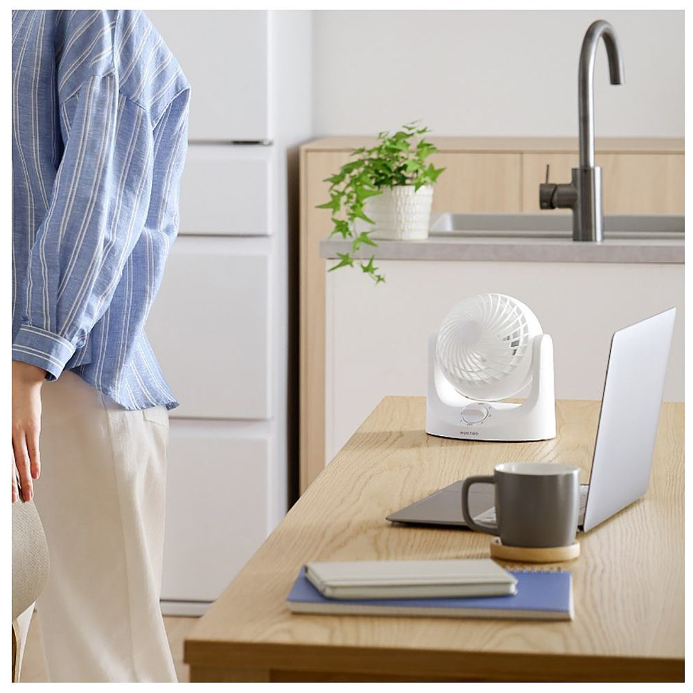 マカロンのようにころんとしたフォルムで、卓上タイプの扇風機です。