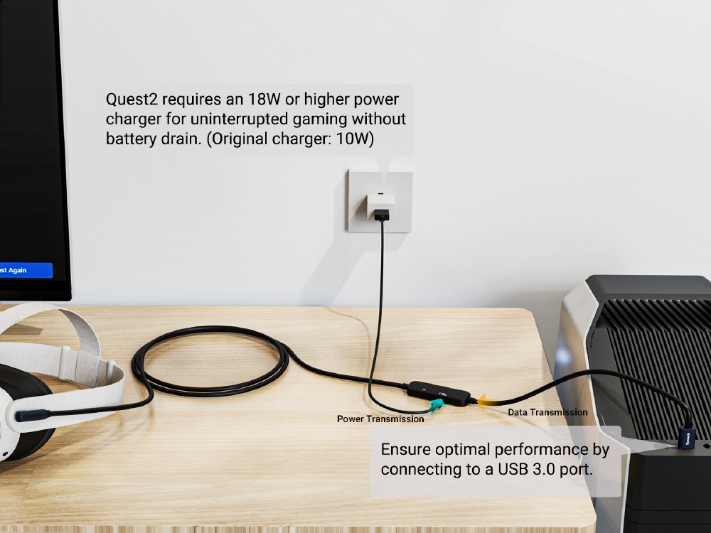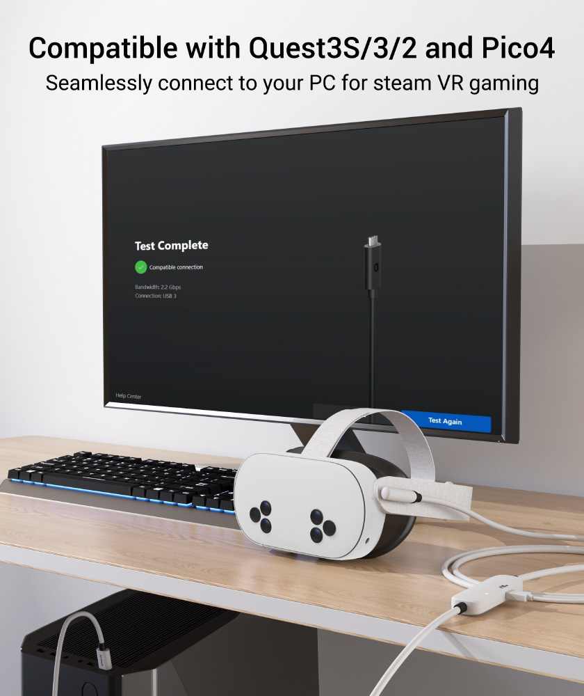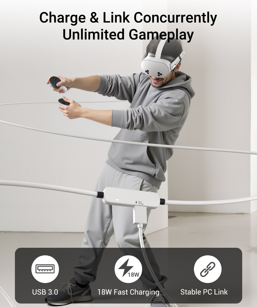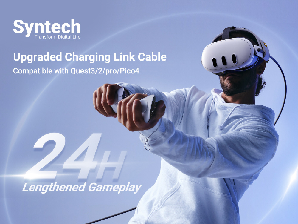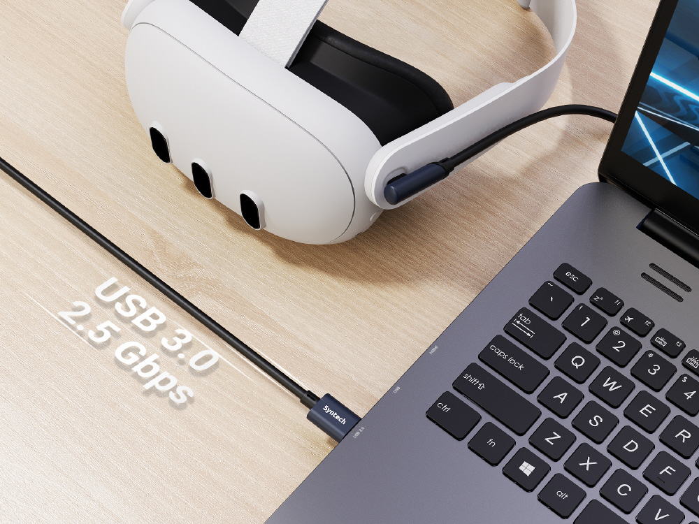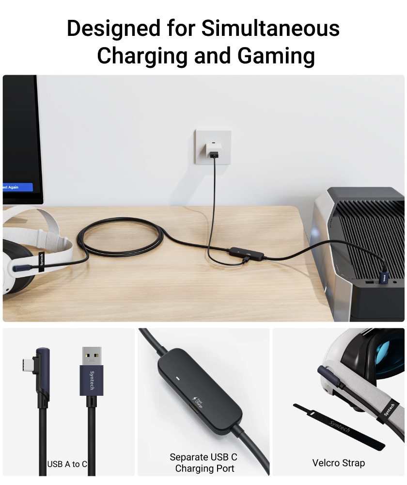 Meta Quest 3S対応 / PICO 4 Ultra対応 / Meta Quest 3対応 Syntech 高速充電リンクケーブル 充電ポート複数 18W充電 5mリンクケーブル ブラック M32C1-5BK