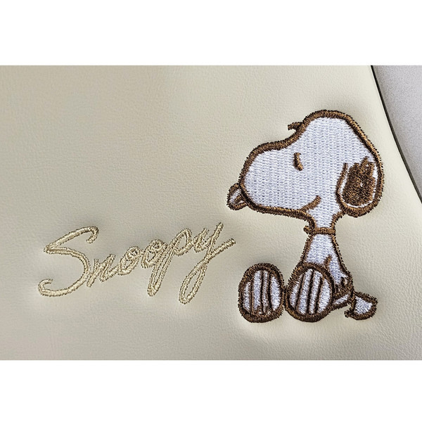 ヌバック調の素材にワンポイントの刺繍がエレガントスヌーピーデザインのマルチケース