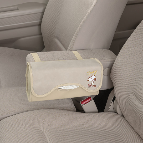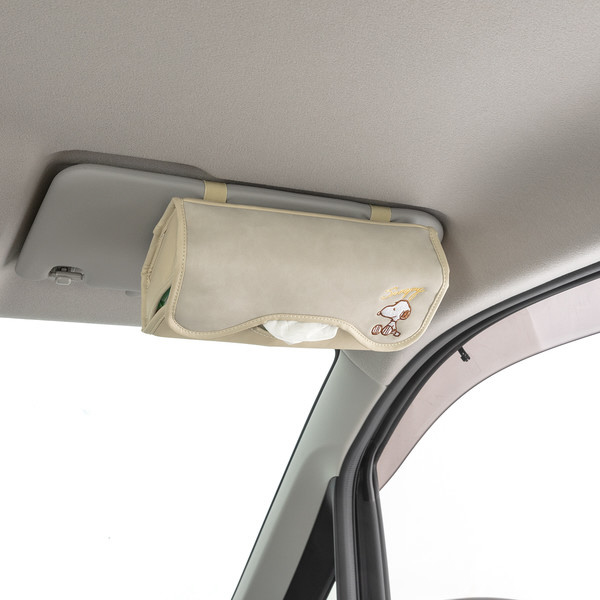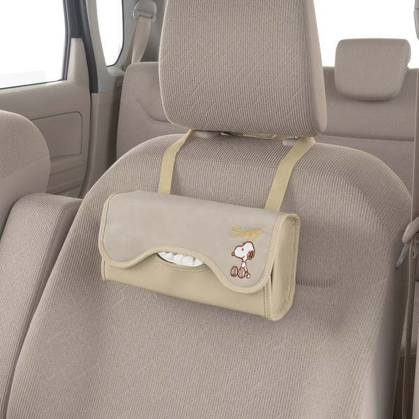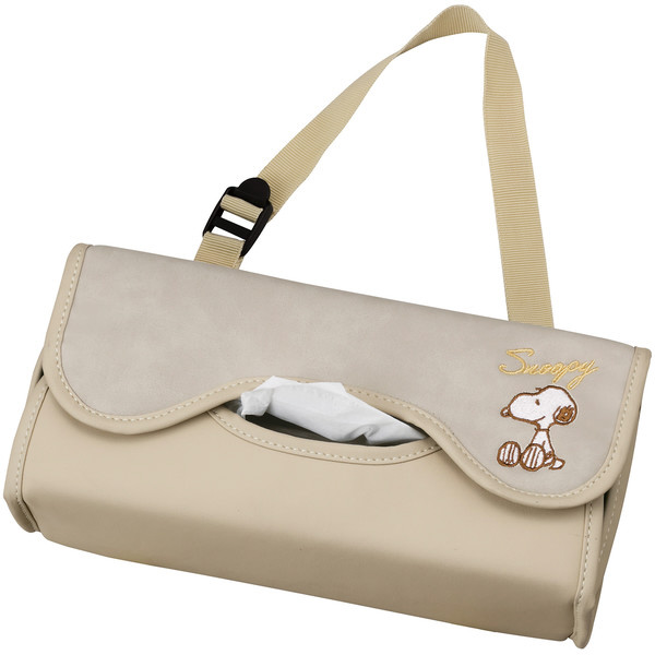ヌバック調の素材にワンポイントの刺繍がエレガントスヌーピーデザインのティッシュカバー