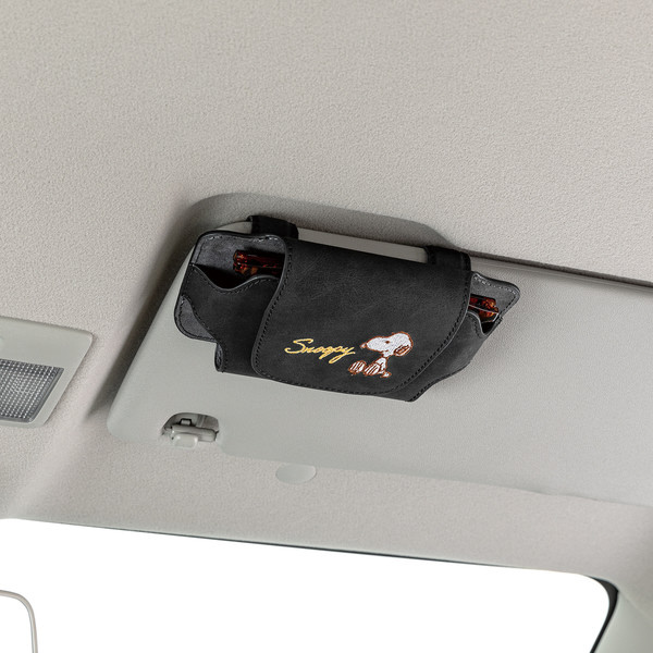 ヌバック調の素材にワンポイントの刺繍がエレガントスヌーピーデザインのサングラスケース