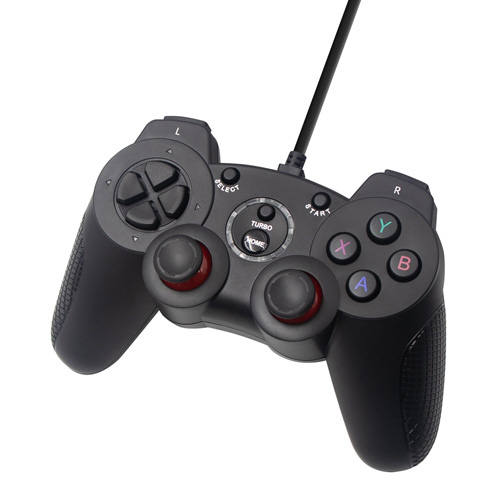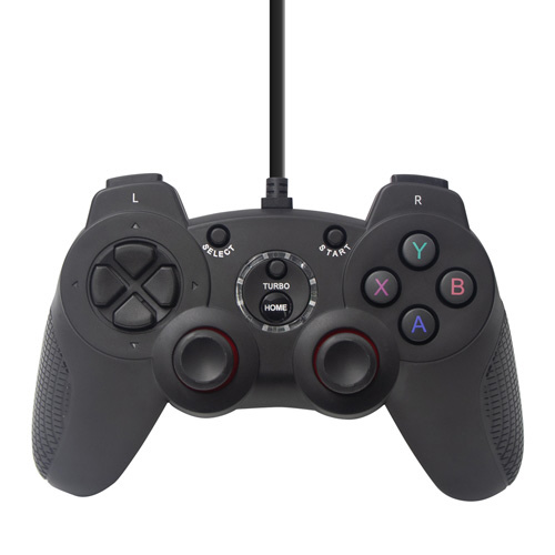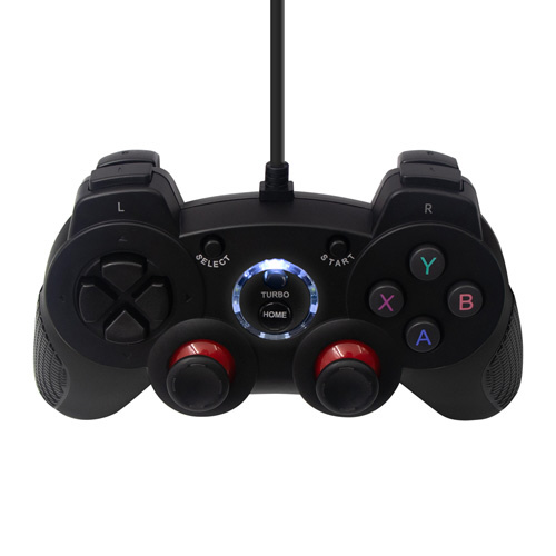 連射/振動機能を搭載した、ストレート配置のパソコン用有線ゲームコントローラーです。