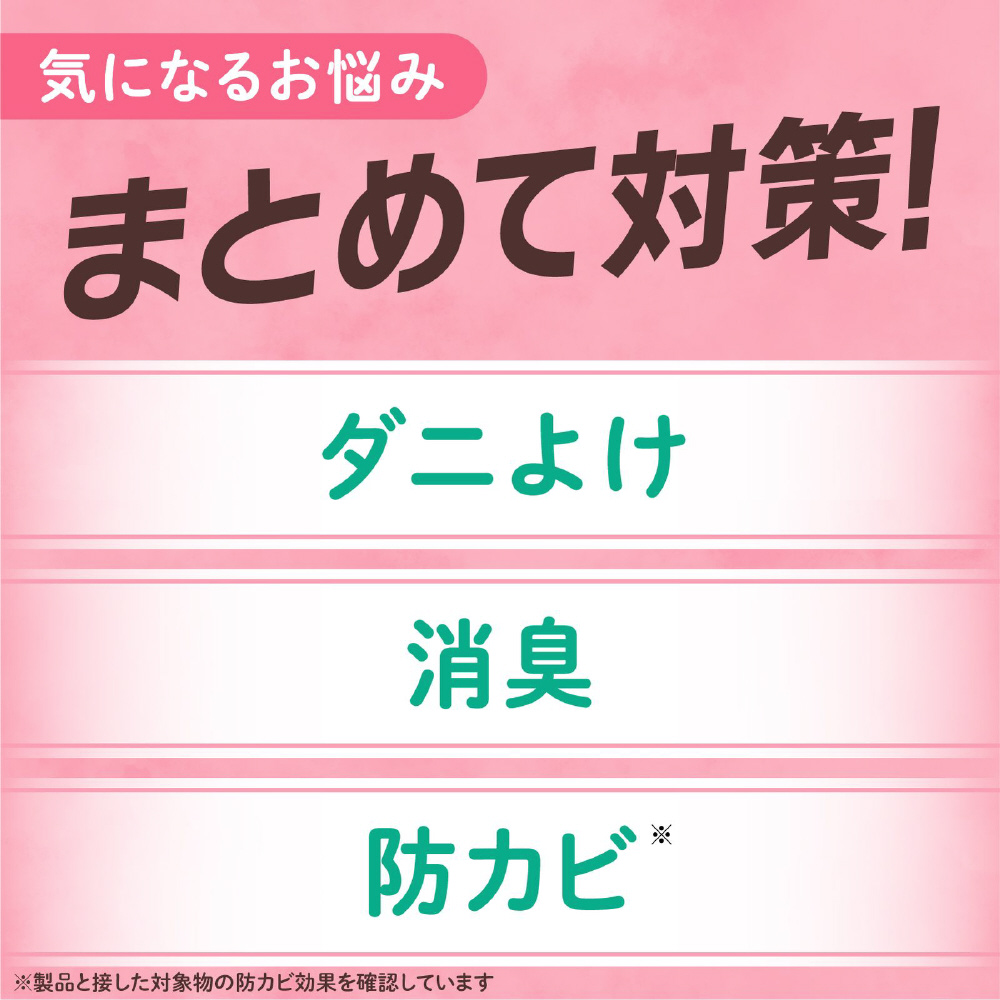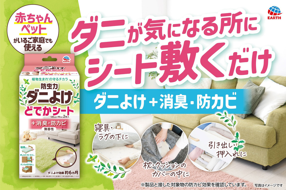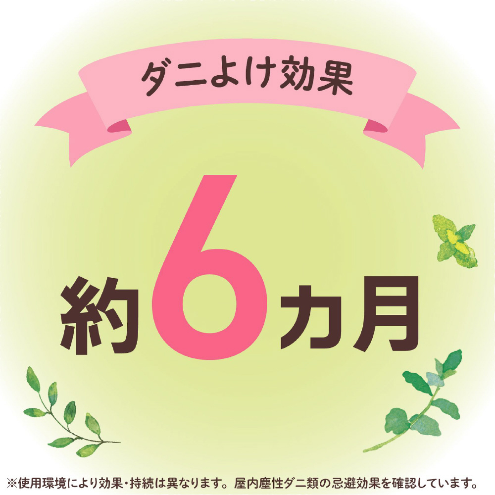 ●植物由来成分配合でダニよけ効果が約6ヵ月間持続します。(使用環境により効果・持続は異なります。屋内塵性ダニ類の忌避効果を確認しています。)