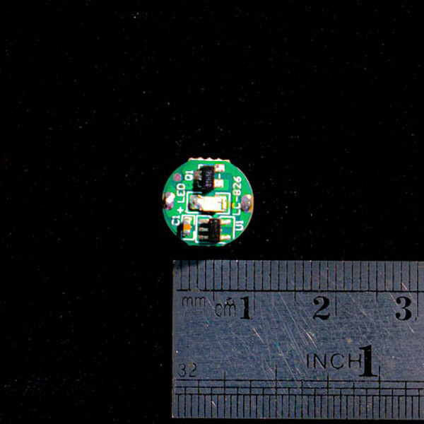 直径約11mm、高さ約5mmの極小サイズにLED、スイッチと電池ケースが一体となった超コンパクトサイズのLEDモジュール。
