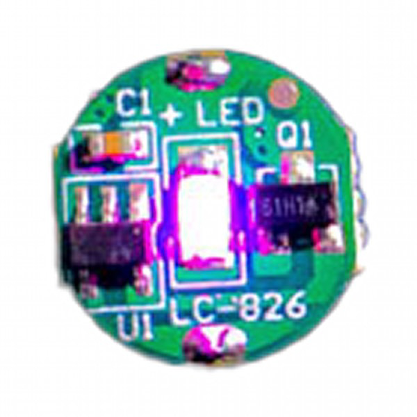 直径約11mm、高さ約5mmの極小サイズにLED、スイッチと電池ケースが一体となった超コンパクトサイズのLEDモジュール。