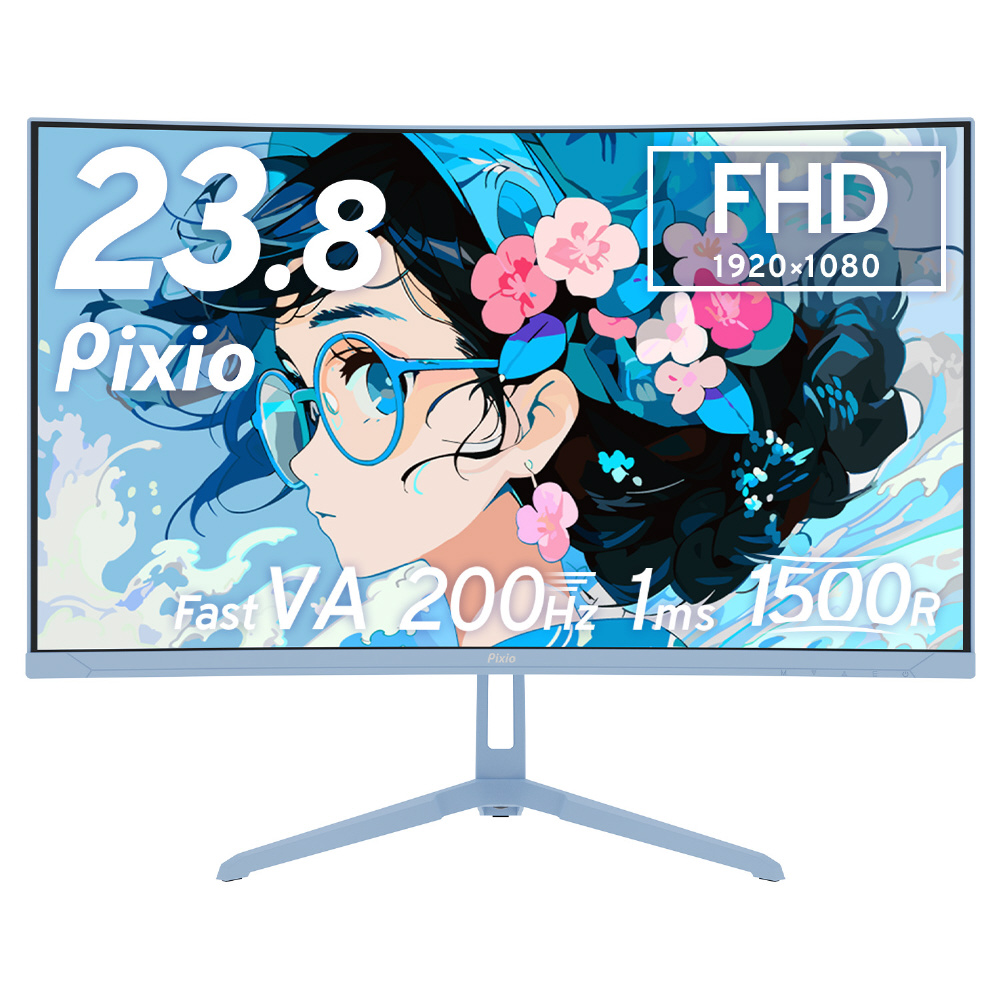 PXC248WAVEB-O ゲーミングモニター PXC248 Wave(200Hz) ブルー [23.8型 /フルHD(1920×1080) /ワイド /曲面型] 【864】