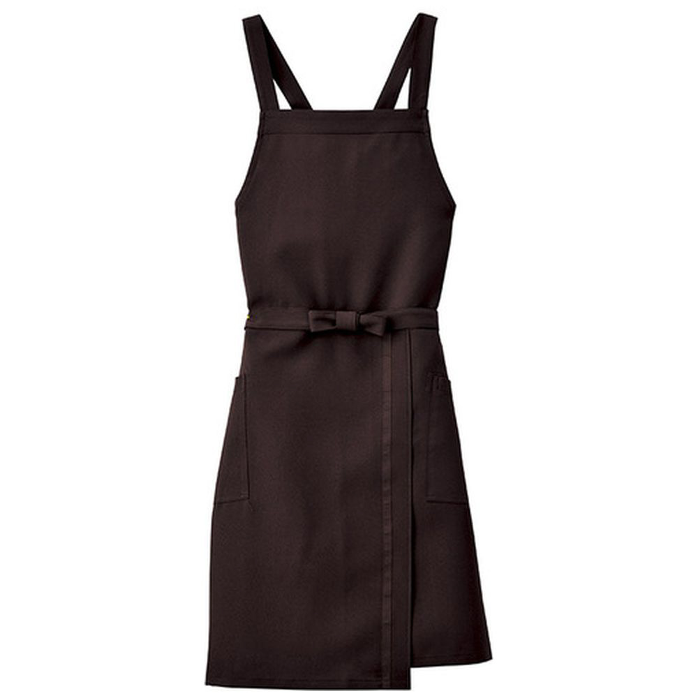 サイドスリットと配色テープがアクセントの胸当てエプロン。様々な業種で活躍するデザインです。