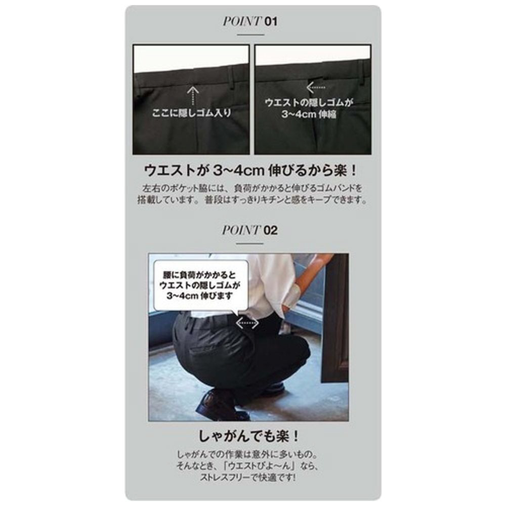 快適な着心地のサーヴォ製ストレッチストレートパンツ。4Lサイズ、ブラック。伸縮性のあるウエストゴムで動きやすく、様々な業種で活躍します。