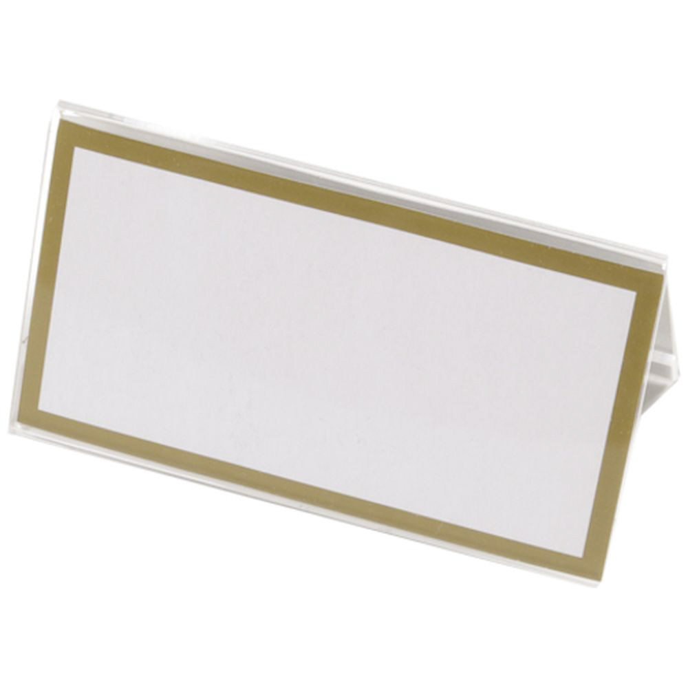 コンパクトなアクリル製V型カード立。2面に紙を挿入でき、様々な用途に便利です。