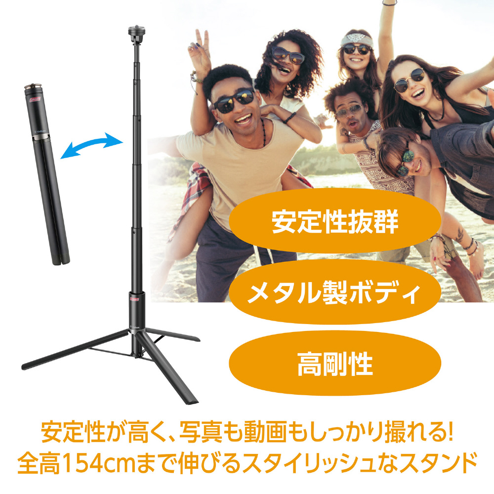 安定性が高く、写真も動画もしっかり撮れる!全高154cmまで伸びるスタイリッシュなスタンドです。