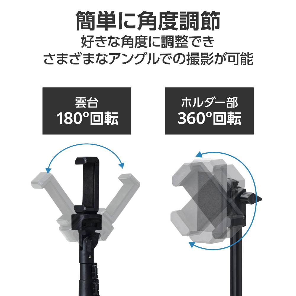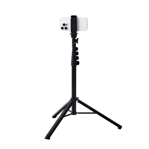 スマホ カメラ 三脚 最大約165cm スマホホルダー 付 スマホスタンド 【 4.0~6.7インチ iPhone Android / 1/4ネジ対応 一眼レフ 等各種対応 】 ブラック P-STCFWL02BK