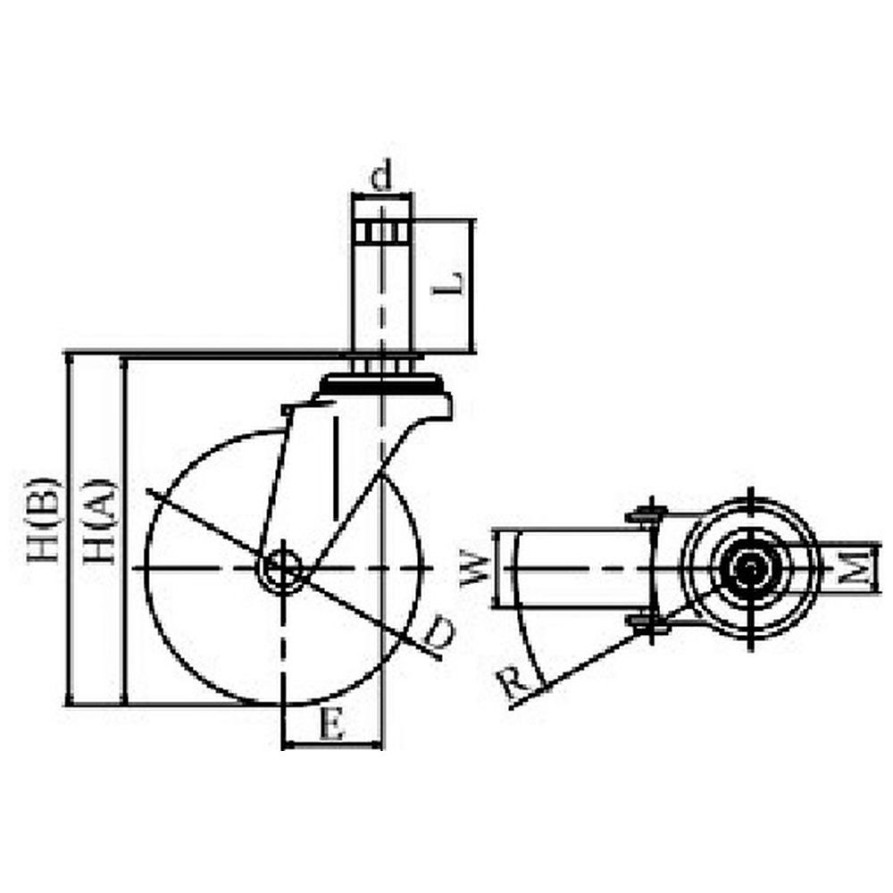 商品名 ユーエイ 差し込み式 自在 キャスター ゴム 車輪径65mm Lタイプ LTF型 パイプ径16