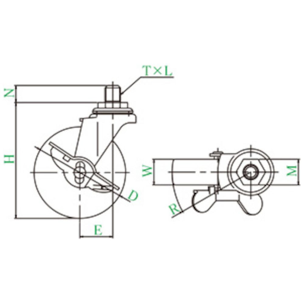 | 商品名 | ユーエイ ねじ込み式 自在 キャスター ゴム 車輪径100mm ストッパー付き Eタイプ ET-S型 ネジ寸法M16×40ピッチ2 |