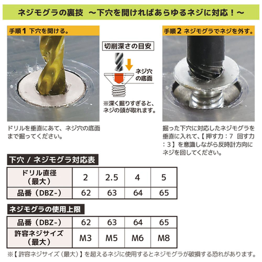 ■GTドライヴ(DZ-70)と潰れた六角穴付ボルトを叩かず外せるネジモグラ4本組(DBZ-20)のセット。