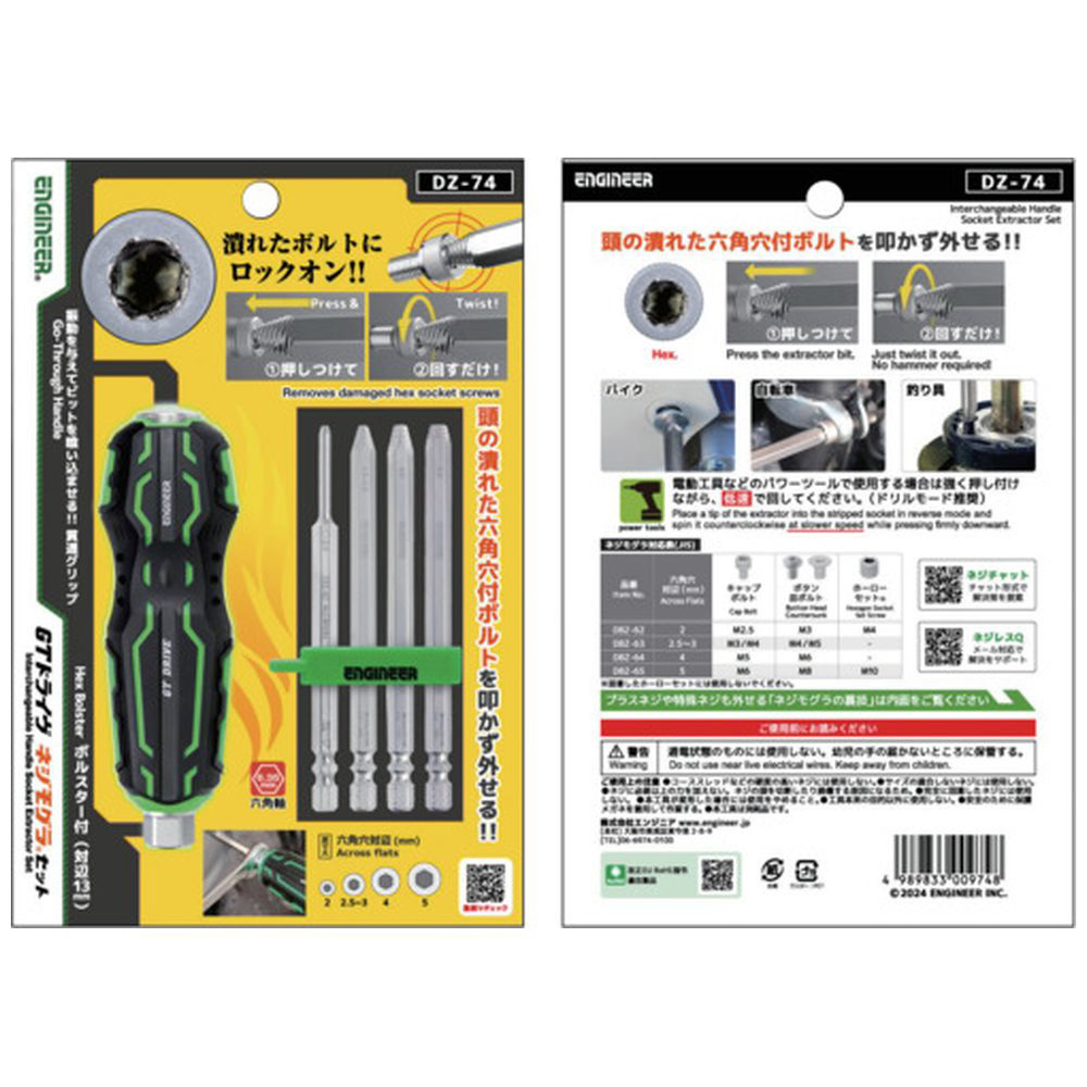 GTドライヴ(DZ-70)と潰れた六角穴付ボルトを叩かず外せるネジモグラ4本組(DBZ-20)のセット。
