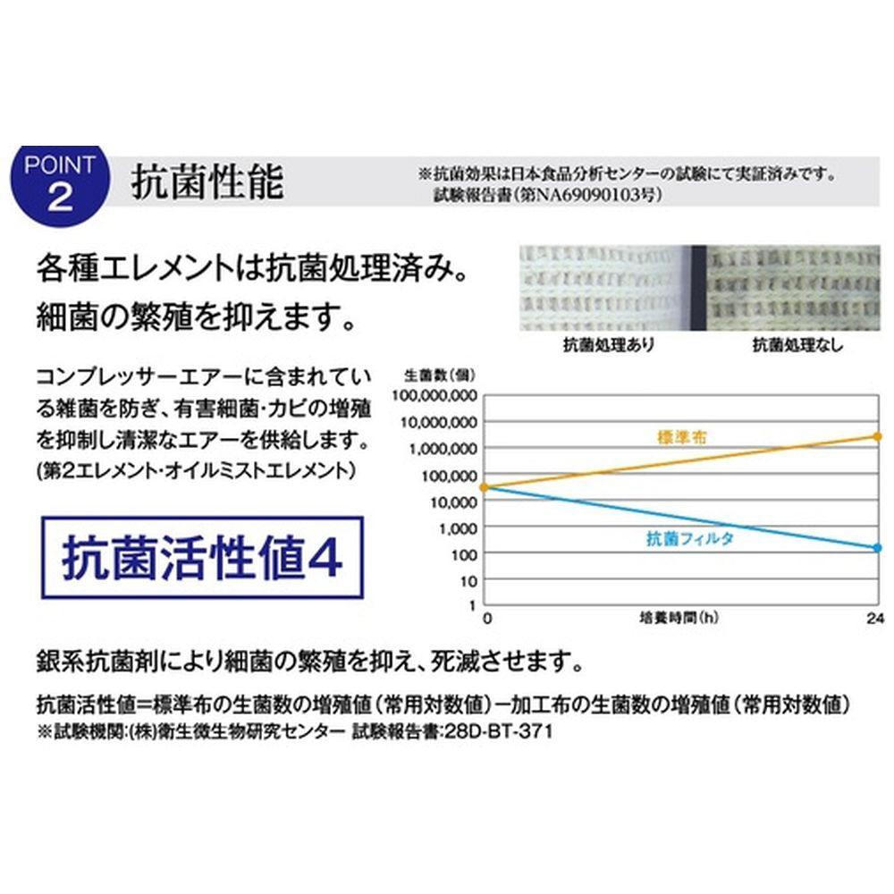 ■抗菌活性化(抗菌活性値4)によりエレメント内の菌の増殖を抑制します。