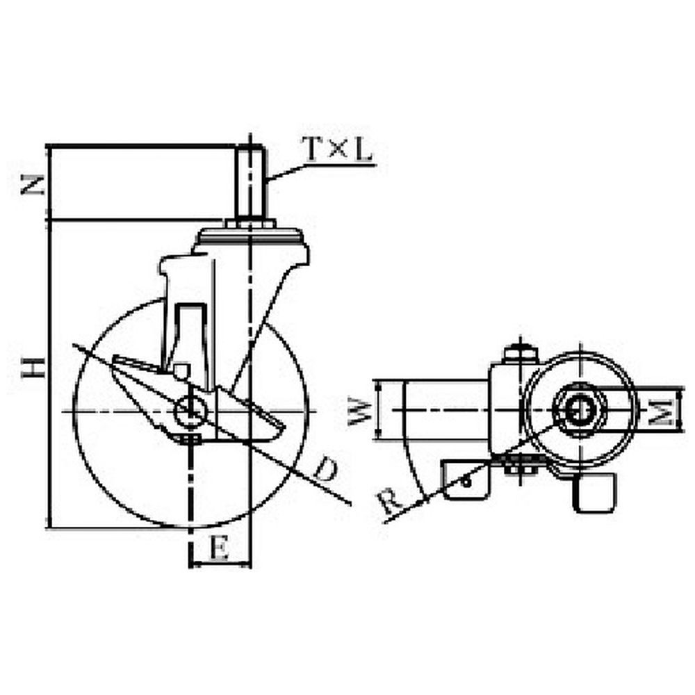 | 商品名 | ユーエイ ねじ込み式 自在 キャスター ゴム 車輪径125mm ストッパー付き Jタイプ SJT-S型 ネジ寸法M20×40ピッチ2.5 |