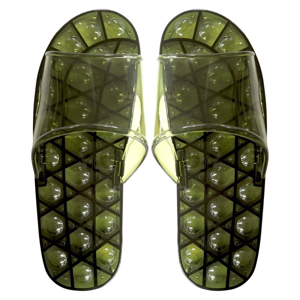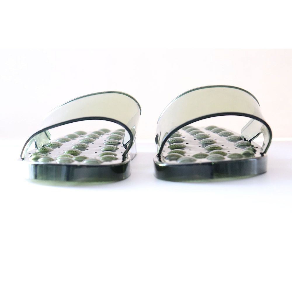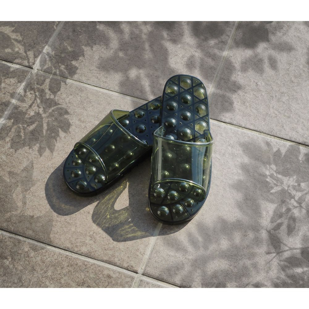 水はけがよい設計なのでいつでも快適。ベランダ履きやお風呂掃除、海水浴などマルチに活躍します。ソールの凹凸構造が足裏を刺激しクセになる踏み心地。簡単足裏マッサージ。ボタニカルな雰囲気をイメージした、大人おしゃれなカラーが魅力的なサンダル。透け感のあるクリアな素材で足元から涼しげに。【仕様】目安サイズ:約22.5〜25cm