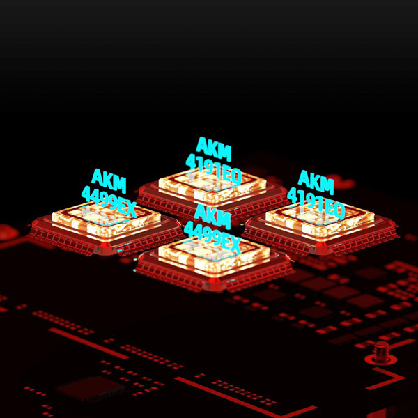 M8TのDACには、デジタル信号(ΔΣモジュレータ)とアナログ信号処理を分離した、AK4499EX×2+AK4191EQ×2のセパレートチップセットを採用しています。