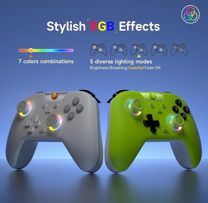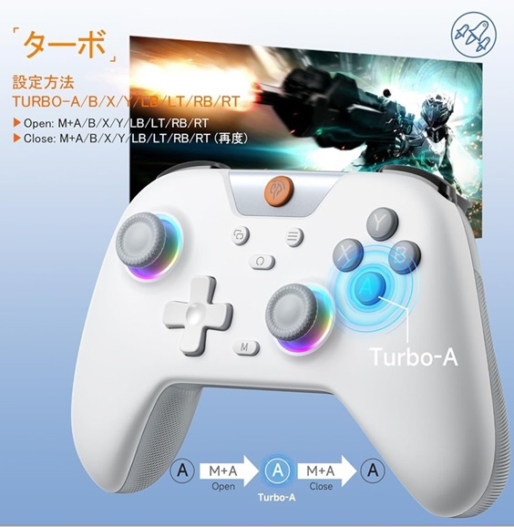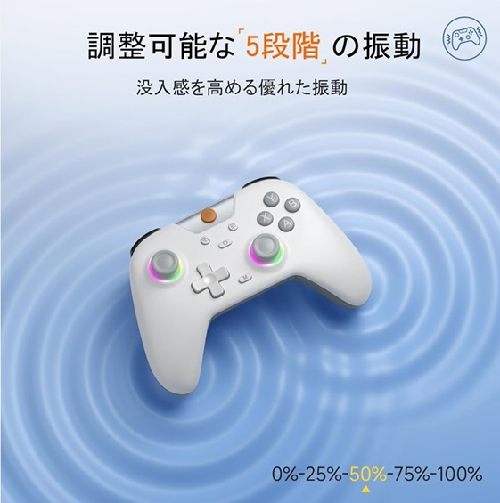 Switchコントローラー、ゲーミングコントローラー、7色ライト、5つのライトモード、5段階振動機能、ホールジョイスティック、ホールトリガー、750mAh大容量バッテリー搭載、PC/Switch/モバイル対応