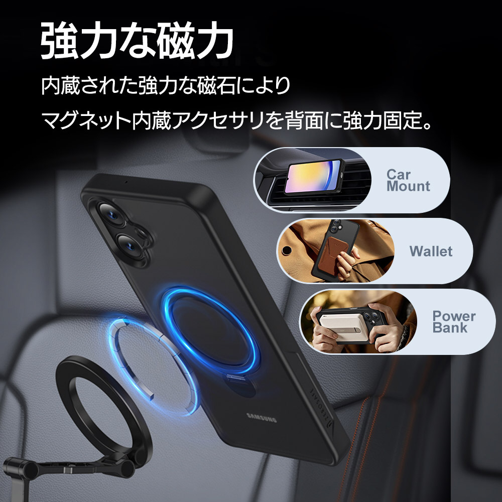 Galaxy A25 5G ZEROSAFE Shaft 360°回転スタンドケース フロストホワイト 8726GA25ZSFSWH