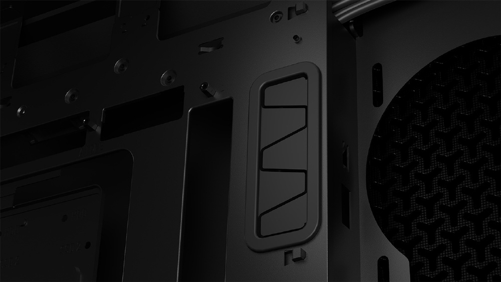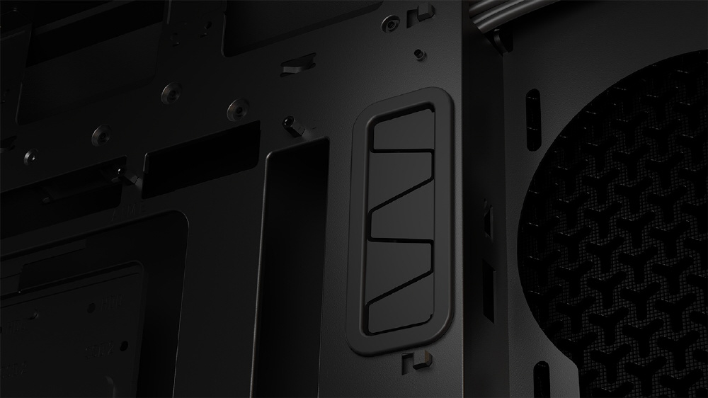 背面コネクタ設計のマザーボードに対応する印象的なデザイン。圧倒的な冷却性能を実現するミドルタワー型PCケース